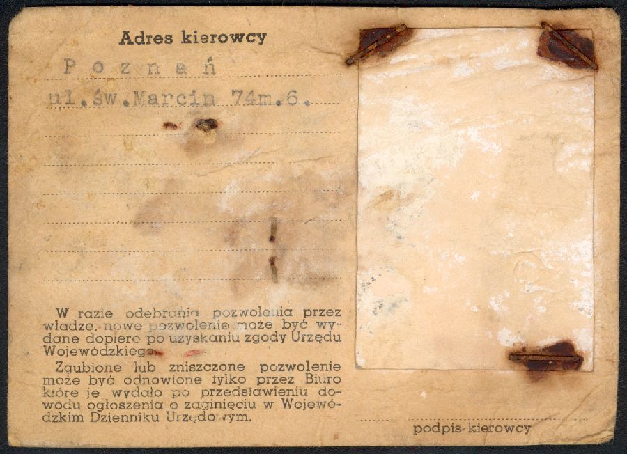 [s. 2] Adres kierowcy / Poznań / ul. św. Marcin 74 m. 6 / [ślady po fotografii]